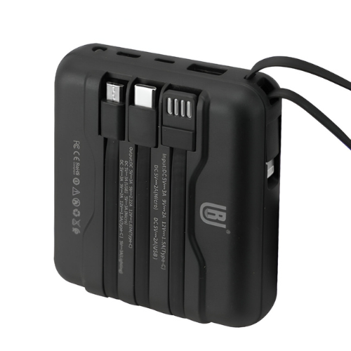 📦 Capacité : 10.000 mAh – Power Bank intégrée